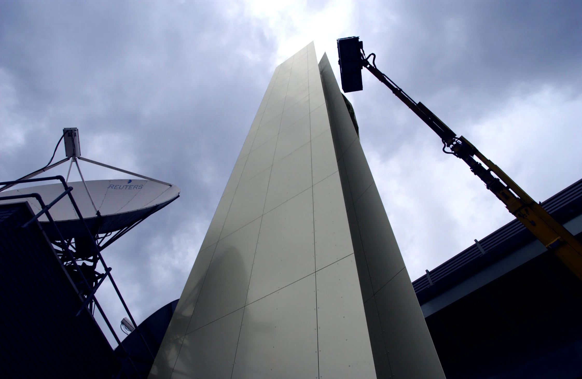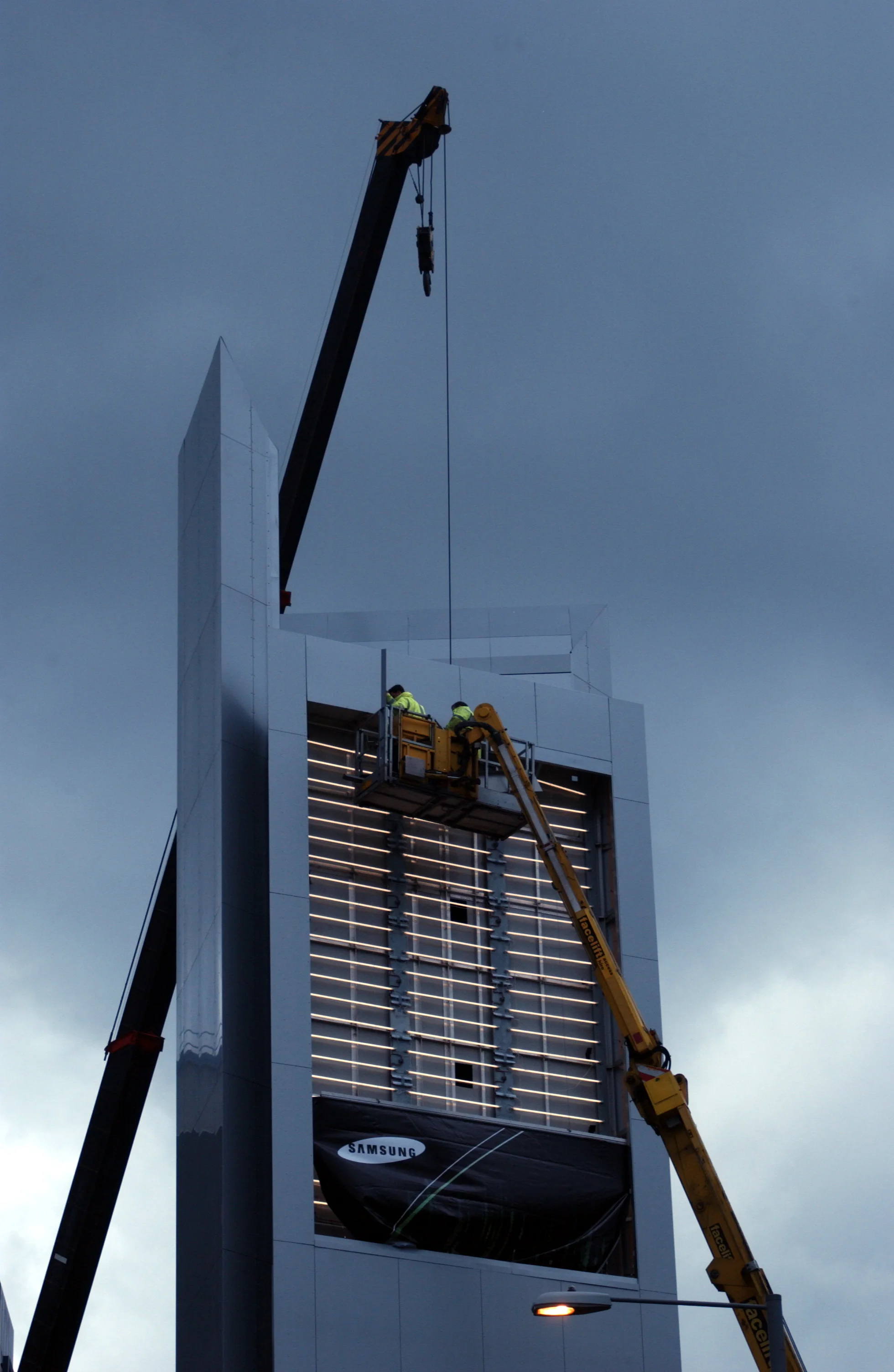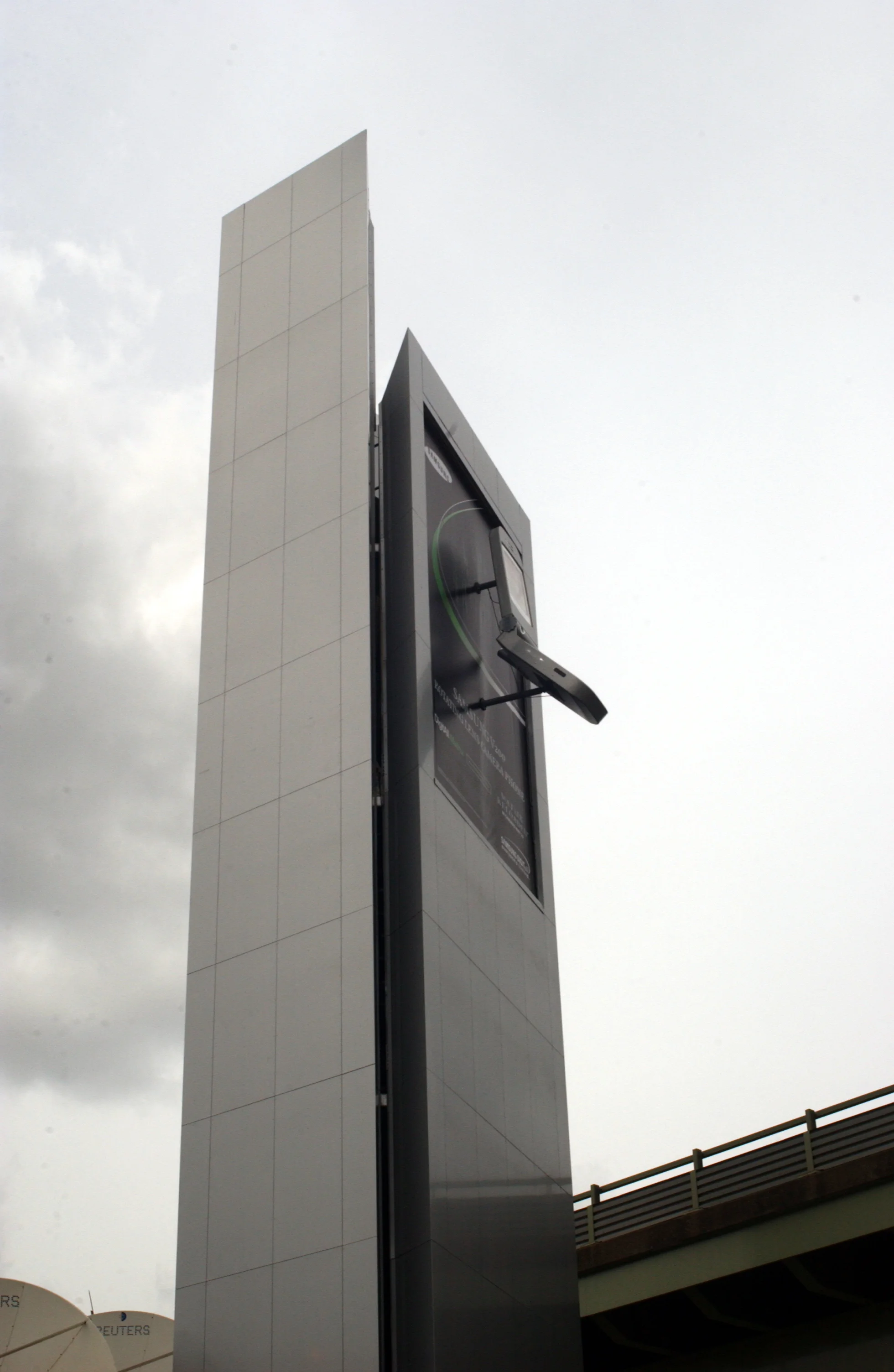 A monument to advertising, this tower erected adjacent the M4 was designed to accommodate billboards. The first to depart from the conventional billboard type and has spawned innumerable imitations