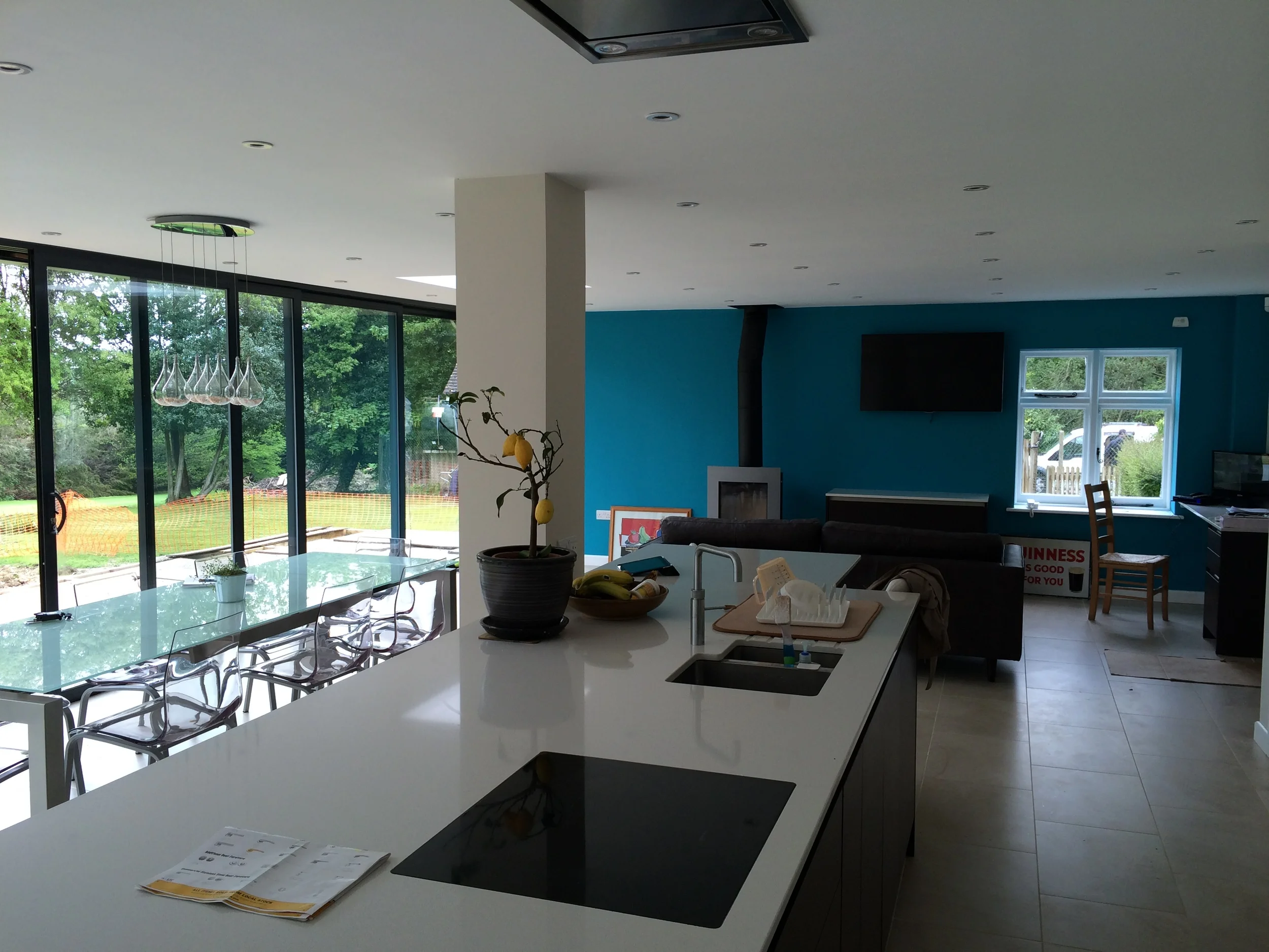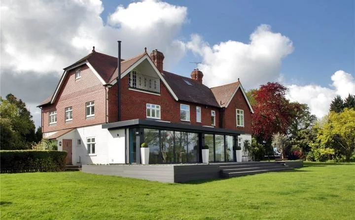 A modern extension to a traditional house in Cranbrook in Kent. The extension forms part of a series of adaptations carried out over a number of years and includes a major roof extension to provide a master bedroom suite