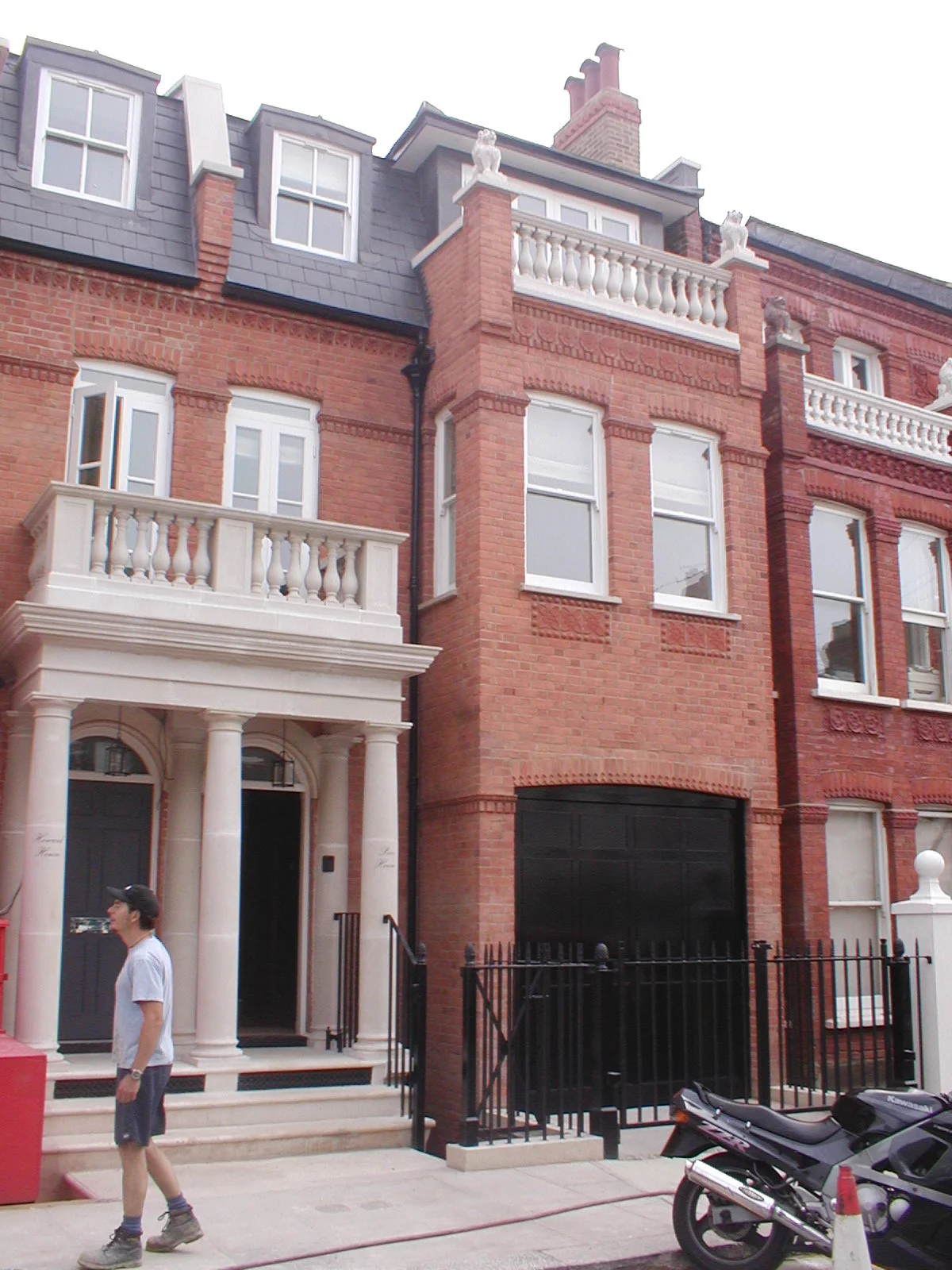 A new-build development of a terrace of six houses in Fulham, London modeled on the on style of adjacent houses known locally as 'Lion Houses'