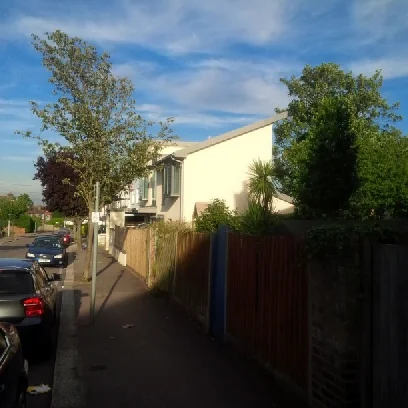A development of nine apartments on a constricted site in Hackney, north London. Completed in 2018, the building steps on plan in three bays following the curve in the road with each bay containing 3 flats, all with spacious balconies facing south.